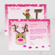 A pink postcard for kids that features falling snow, a reindeer and a naughty elf. Send your child this personalized letter from Santa, there is room on the back for their Christmas list. The name, message and greetings can all be customized. For girls big and small.