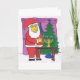 Interfaith greeting card featuring Santa Lighting a Hanukkah Menorah in front of Christmas Tree.
