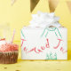 Line drawing in red and green of Santa Lucia and the words "God Jul"