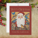 Cute rich red Santa Claus Bluebirds - art deco whimsical Christmas illustration.