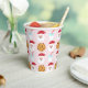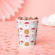 This adorable paper cup features Santa with his milk and cookies on a pink background.