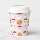 This adorable paper cup features Santa with his milk and cookies on a pink background.