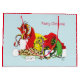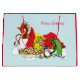 Three small dragons playing amongst Santa's red hat, cookies and a glass of milk in a backdrop of blue