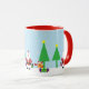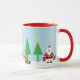 Custom Santa Christmas Mug with trees and reindeer. Makes a great gift.