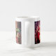 A mug with two pictures one with Santa and an elf making toys and one with Santa singing.