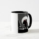 Enjoy your holiday drinks with a modern twist on Santa Claus. This Christmas mug features a minimalist black-and-white Santa with a striking red glow, set against a grey background with a black-and-white Christmas tree. Perfect for fans of dark, stylish holiday designs who want a unique festive look.