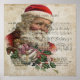 Santa on a music background holding toys in his hand along with some Christmas holy. The music is Silent Night, Holy Night. This would be cute framed and hung on the wall next to the Christmas tree or displayed in a kids room.