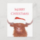 Cute orange highland cow illustration Merry Christmas- postcard