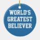 A cute Santa Claus cartoon design. You can personalise the "World's Greatest Believer" Christmas message on the back.