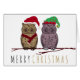 This Christmas greeting card featuring Santa Owl and Elf Owl perched on a snowy branch is perfect to send to friends and family during the holiday season.