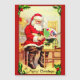 vintage Santa Claus painting a doll house magnetic Christmas greeting card
