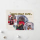 Minimal and modern holiday photo template card featuring 3 photos of your pup on the front with a fun typography text that says "santa paws came." You can also add another picture and message on the back. The background is cream.