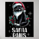 Santa Paws Tuxedo Cat Wearing Santa Hat Christmas Poster