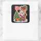 This sticker features a smiling Santa Claus peeking around a wooden door decorated with a holly wreath. A brightly decorated Christmas tree and a large pile of wrapped gifts are visible in the foreground. The funny text "I Saw That!" appears in red and white above the scene. The design is set against a solid black background. The design may look real due to the high detail and three-dimensional texture in the artwork.