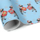 Penguins exchanging gifts for Christmas, each wears its Santa hat and holds a decorated package.