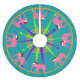 Pink elephants with Santa Claus hats marching in a circle around a circus themed Christmas tree skirt.