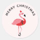 Santa Pink Flamingo Christmas Classic Round Sticker