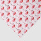 Novelty Christmas tissue paper with a pattern of pink flamingos in Santa outfits on a pink background.