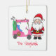 Santa Pink Golf Cart Christmas with Lights Wreath Ceramic Ornament