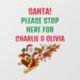 The words "Santa Please Stop Here" are elegantly lettered in classic red and green, capturing the timeless charm of the season and make this window sticker uniquely yours by adding your children's name/s. It's a wonderful way to make Santa's visit feel even more special for your loved ones.