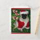 Our Santa Pug is looking sharp in his red Santa Claus suit on a green background with snowflakes and paw prints. Santa Paws (a.k.a. Rocko) wishes you a very Merry Christmas and a Happy New Year. Ho-Ho-Ho! Ideal for all dog and pug lovers.