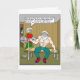 A funny christmas card; especially for those persons who lift weights. The cartoon drawing on the front of the card shows a buff santa sitting on the weight bench while he's being scolded by Mrs. Clause for not being plump.