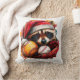 Santa Raccoon & Baseballs Holiday Throw Pillow