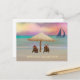 Original illustration of Santa and reindeer on a tropical beach relaxing and watching the sunset. ©Becky Nimoy 2021 Photo option and message on the back. ©Becky Nimoy 2021