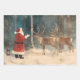 Santa Reindeer Vintage Christmas Wrapping Paper Sheet