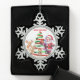 "MERRY CHRISTMAS" SANTA & REINDEER'S PEWTER SNOWFLAKE ORNAMENT
