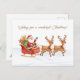 This design features a watercolor illustration of Santa in a sleigh full of gifts, pulled by reindeers.