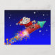 Santa Riding A Fireworks Rocket On A Starry Night Holiday Postcard