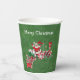 These paper cups are dark green with Santa Claus riding a red and white Christmas train carrying candy canes and letters to Santa with peppermint candy wheels. Customise your text with the templates on the front and back.