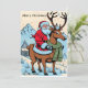Spread festive cheer with our Santa Riding Reindeer Customisable Holiday Card. This whimsical and heartwarming design features jolly old Saint Nick perched atop his trusty reindeer, soaring through a starry winter night. Personalise your message and add a special touch to your season's greetings with this enchanting card.