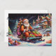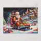 Santa riding snowmobile Psychedelic colours Postcard