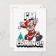 Santa Running, Humour Quote Holiday Funny Christmas Holiday Postcard | Are you looking for funny Christmas postcards? A funny Christmas Santa Claus with the saying "I'm coming" is ideal for people who like Santa Claus, Saint Nicholas, and Father Christmas and celebrate with Family and Friends on Christmas Eve and Christmas Day.