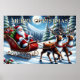 Santa’s Sleigh Through Snowy Forest at Christmas Poster