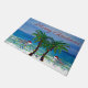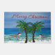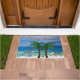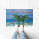 Santa sandpipers playing on the clearwater beach with Christmas palm trees tropical coastal home Holiday doormat. Tropical Christmas palm tree indoor or outdoor rug for patio, indoors, entrance or anywhere. These mats are made using my original art designs.