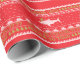 He's making a list... of people to bite. Send your gift wrapped in this funny Christmas wrapping paper with a cool ugly sweater design depicting a great white shark with a Santa hat with trees, snowflakes, fishes, boats and waves finishing out the decoration on red background. Cute, funny and weird.