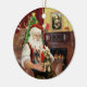 Santa at home in front of a cosy fire with his two Silky Terriers before the big night. (Notice Mona Lisa over the mantle.)