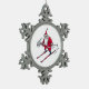 Santa Skiing pewter snowflake ornament is for people who are cartoon fans, skiers, or coffee drinkers, or all three. Santa Skiing is Steamy Raimon original cartoon art.