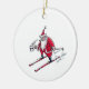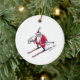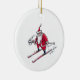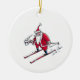 Santa Skiing round ceramic ornament