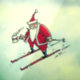 Santa Skiing window clings are fun Christmas decorations for skiers, ski lodges, coffee drinkers, coffee shops and other businesses in ski areas, cartoon fans, and people who like to spread good cheer during the holiday season. Santa Skiing is Steamy Raimon original cartoon art.