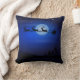 Reversible Christmas Throw Pillows featuring a sillhouette of Santa and his sleigh being pulled by reindeer against a midnight blue starry night sky with a moon shining in the background. On the back side is a sillhouette of a Christmas tree and a black and midnight blue starry sky. With two pillows you can display both sides together at the same time.