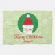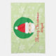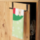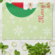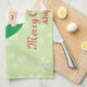 A kitchen towel perfect for the holiday season, this kitchen towel features a light green background with snowflakes on it. There is a graphic of Santa with "Merry Christmas" written in red cursive font. Your name is written underneath in red font. Personalise your kitchen towel today!