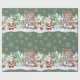 Wrapping paper with Christmas images of Santa Claus, Snowman, Reindeer, Penguin and Santa cat in winter snowy forest