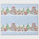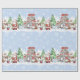 Wrapping paper with Christmas images of Santa Claus, Snowman, Reindeer, Penguin and Santa cat in winter snowy forest