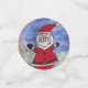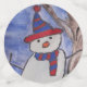 The hunt is on in the snowy woods for some beautiful Christmas tree ornaments for Santa's grotto. Santa Claus and his snowman friends are so excited they have found two beautiful baubles; one a deep orange, the other vivid turquoise. The red of Santa's suit and the cheerful stripes of the snowmen's scarves and hats make this a striking, attractive watercolour Christmas design. Join Santa and the snowmen in their happy anticipation of the approaching festive season.