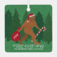 This adorable Santa Squatch cute Christmas ornament is printed on both sides and is easy to personalise, making it simple to create your own funny Christmas keepsake. Bigfoot in a Santa hat is walking over MERRY SQUATCHMAS in a silly white font with a smaller simpler font below is perfect for adding your last name or short holiday message. Santa Squatch carries a big red toy sack, where you can add the year in a bold white font, and a red and white candy cane as he travels through the woods. Seven faux leather pine trees in the background add to the faux texture feel of this light brown faux leather Sasquatch in a Santa hat custom aluminium ornament. Personalise this double sided square metal Christmas ornament featuring Santa Squatch for a funny Christmas keepsake.