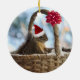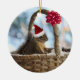 Photo of a squirrel wearing a Santa hat sitting in a basket with snow all around. The basket has a bright red Christmas bow. This cute squirrel picture is a fun way to celebrate the holiday season and can be easily customised with your own text on many different products for Christmas.